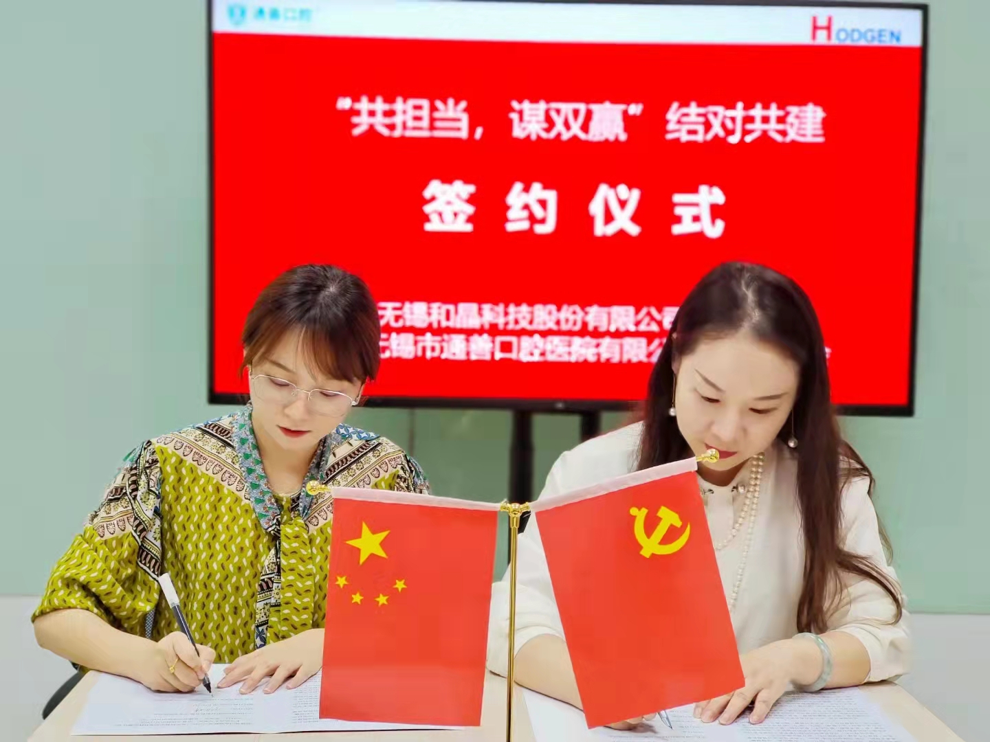接着,和晶科技党支部与通善口腔医院党支部举行了签约仪式,双方计划了下一步支部共建活动安排等,期待通过结对共建达到双促进共提升。以党建结对共建为载体平台,进一步加强沟通和交流,以党建引领,结合实际工作特点,切实发挥党员先锋模范作用,实现资源共享,优势互补,推进党建共建共赢,深度融合发展,共同担当、发挥合力、共赢未来。